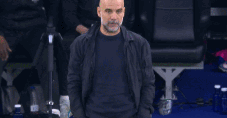 第33分钟,两球落后,瓜迪奥拉场边若有所思