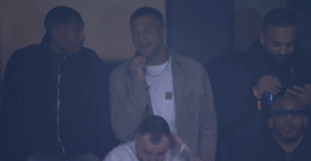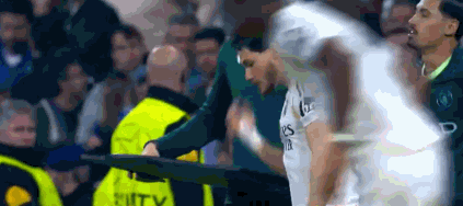 第49分钟,兴高采烈,受伤的姆巴佩场下观战笑容满面