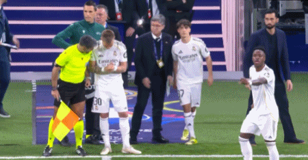 第57分钟,多纳鲁马扑倒维尼修斯被判点球,维尼修斯主罚被扑出